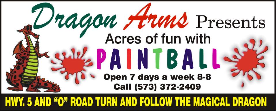 Dragon Arms is located out side of Laurie, Mo, off of O-Road. Just look for the Dragons on O-Road and follow them to Old Eight, turn Left and go down hill to Copperfield Road. Turn Right and you're only 4/10th's of a mile from fun for the day... |